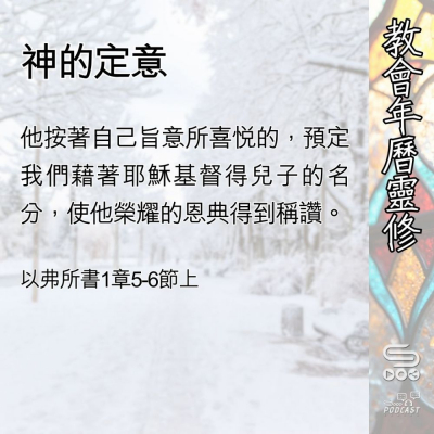 靈修金句:他按著自己旨意所喜悅的,預定我們藉著耶穌基督得兒子的名分,使他榮耀的恩典得到稱讚。