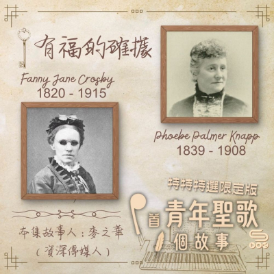 本集詩歌創作者:奈腓比克納普(Phoebe Palmer Knapp 1839-1908)、芬妮克羅斯比(Fanny Jane Crosby 1820-1915)