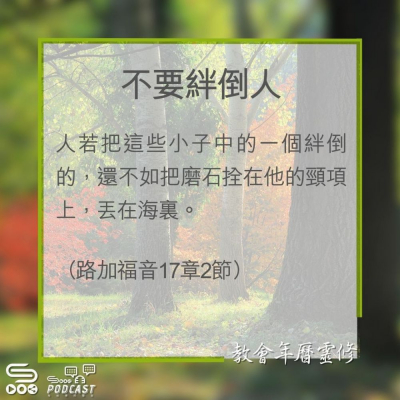 靈修金句:人若把這些小子中的一個絆倒的,還不如把磨石拴在他的頸項上,丟在海裏。