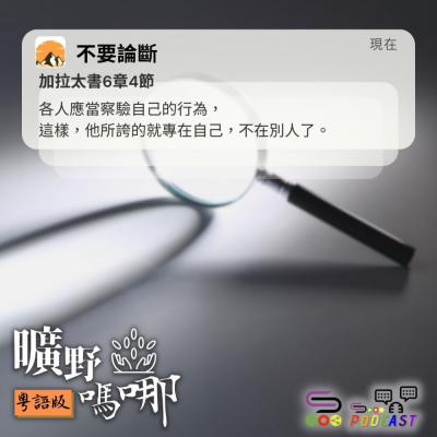 各人應當察驗自己的行為,這樣,他所誇的就專在自己,不在別人了。 (加拉太書6章4節)