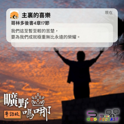 我們這至暫至輕的苦楚,要為我們成就極重無比永遠的榮耀。(哥林多後書4章17節)